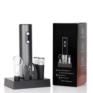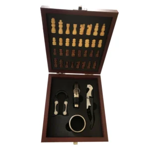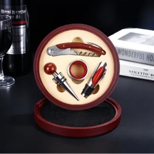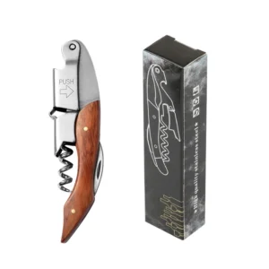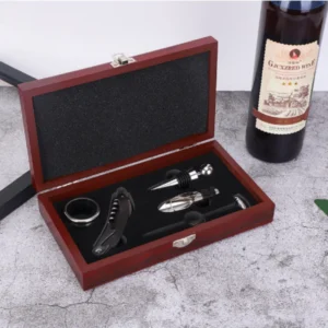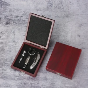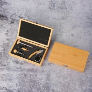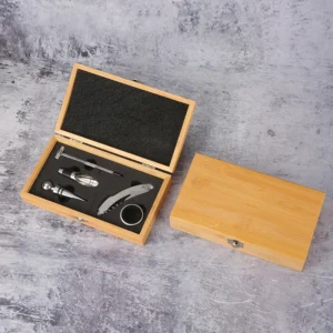High-end stainless steel bottle opener set in a bamboo box