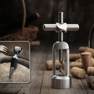 Extra-thick corkscrew specifically designed for wine bottles.