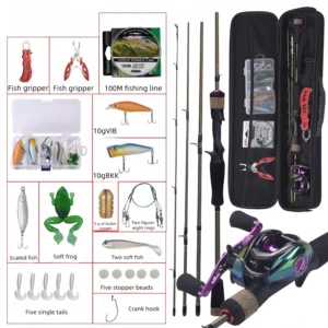 4-section fishing rod with pistol grip and baitcasting reel
