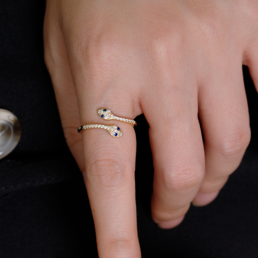 Blue Eye Zircon Snake Ring – Adjustable 925 Sterling Silver Snake Ring