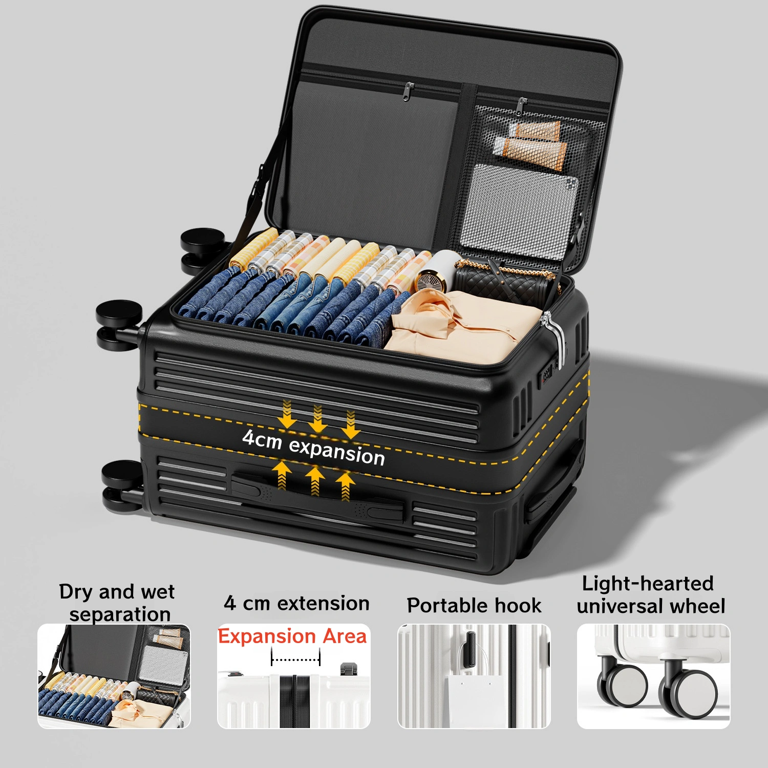 New large-capacity suitcase with side opening lid