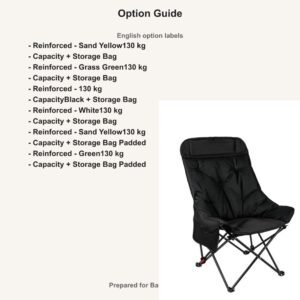 Reinforced – Sand Yellow130 kg Capacity + Storage Bag ,Reinforced – Grass Green130 kg Capacity + Storage Bag ,Reinforced – 130 kg CapacityBlack + Storage Bag ,Reinforced – White130 kg Capacity + Storage Bag ,Reinforced – Sand Yellow130 kg Capacity + Storage Bag Padded ,Option 6 ,Reinforced – 130 kg CapacityBlack + Storage Bag Padded ,Option 8 ,Option 9 ,Option 10 ,Option 11 ,Option 12 ,Option 13 ,Option 14 ,Option 15 ,Option 16 ,Option 17 ,Option 18 ,Option 19 ,Option 20 ,Option 21 |
