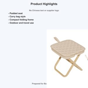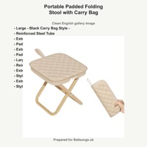 Portable Padded Folding Stool with Carry Bag selected for camping, fishing, queues, travel breaks and compact outdoor seating.