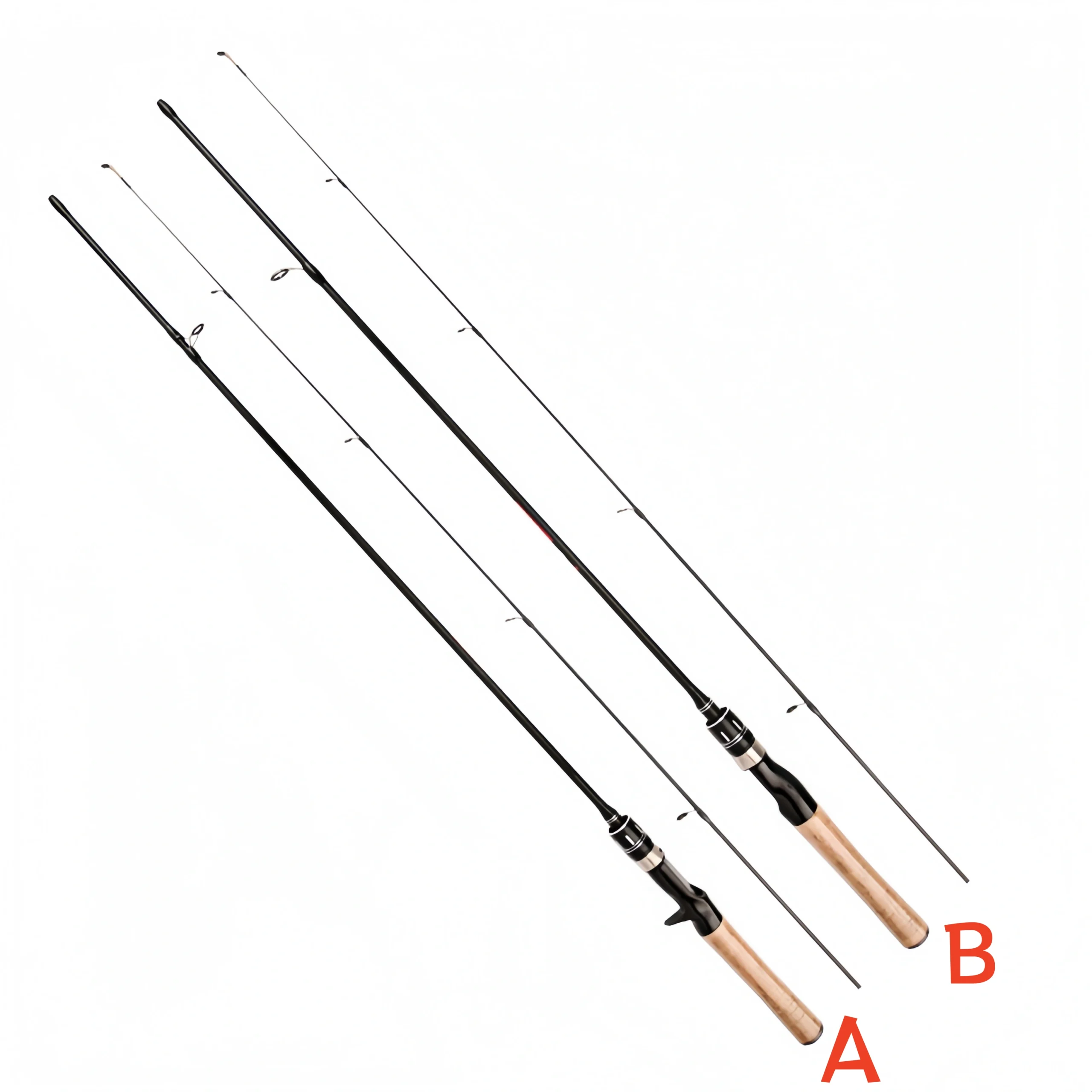 Straight-handled, medium-action, multi-section carbon fiber fishing rod.