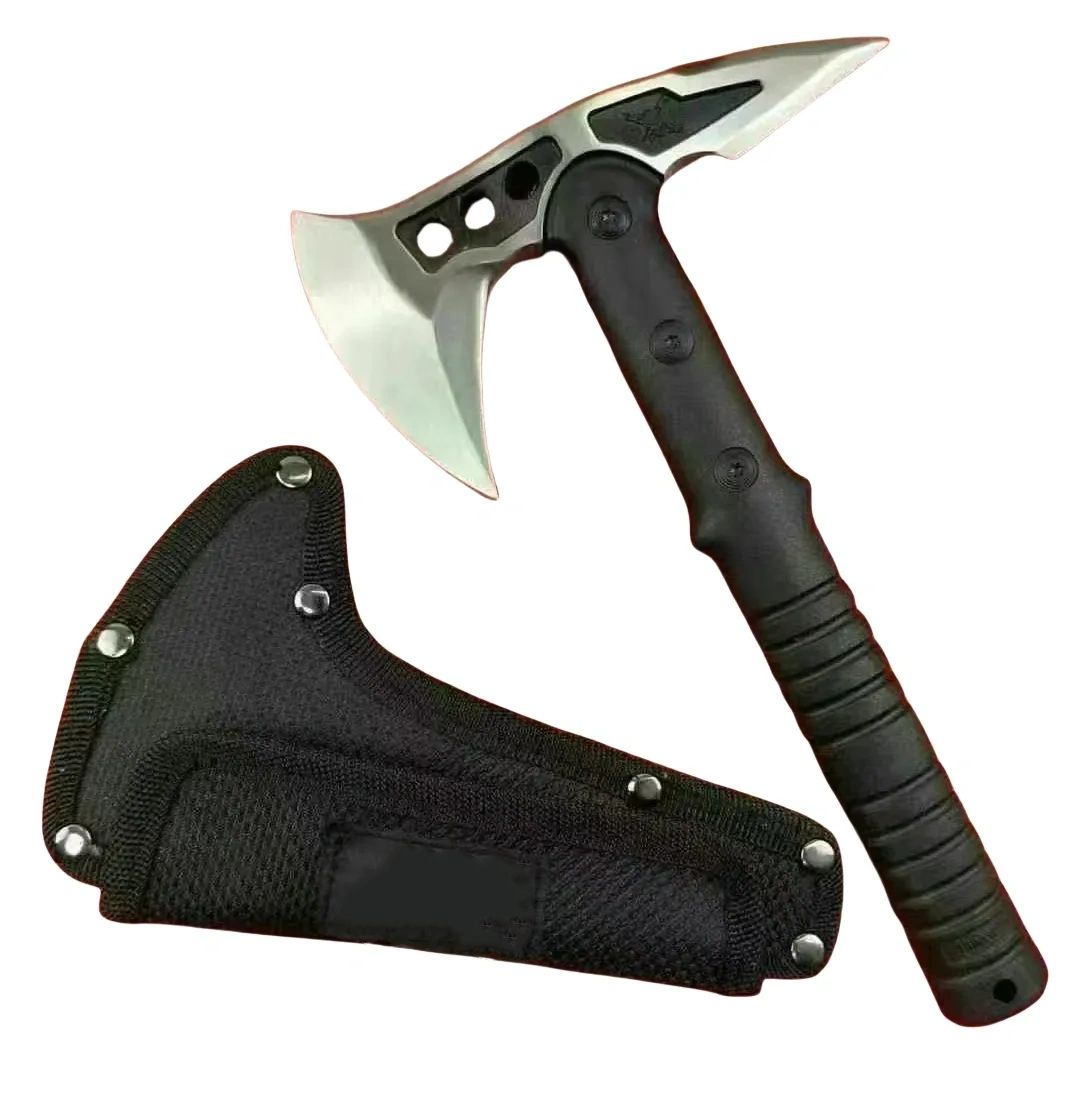 The M48 Kommando Survival Axe is a versatile tool designed for camping and hiking. With a total length of approximately 37 inches (94 cm), it can be used both as a walking stick and for chopping. The blade is made of 2Cr13 stainless steel, ensuring exceptional sharpness and the ability to easily cut through small trees. The handle is constructed from 30% fiberglass-reinforced material, making it virtually indestructible, and the axe head is securely attached to the handle with three metal bolts. The product also comes with a detachable rubber sheath for convenient storage.