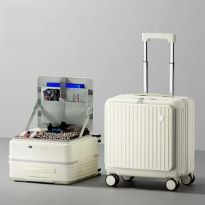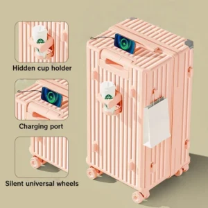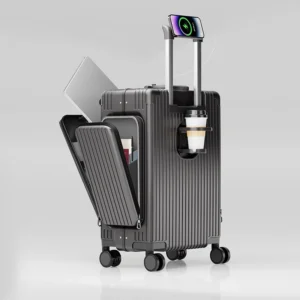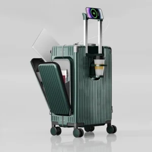 Stylish, rechargeable, drop-resistant, and durable suitcase.
